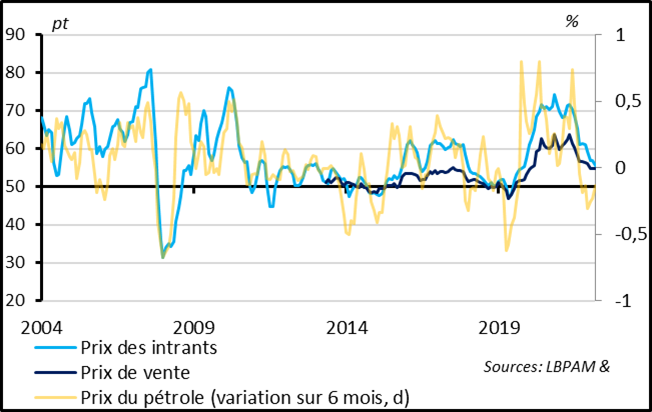 Fig. 2 – Global PMI : price indicators remain high, even in manufacturing