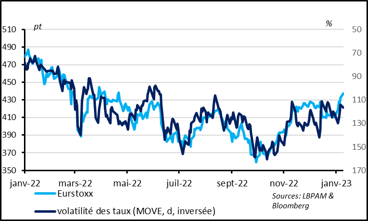 Nous notons que les actifs risqués ont fortement bénéficié de la baisse de la volatilité des taux ses derniers mois, mais nous pensons que ce moteur est probablement derrière nous.