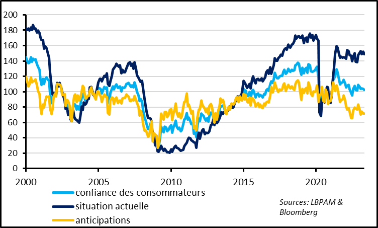 Fig. 2 Etats-Unis : La situation des ménages reste solide en mai même si les ménages sont peu confiants dans l’avenir