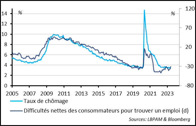 Fig. 3 Etats-Unis : Surtout, les ménages indiquent que le marché du travail commence à se calmer un petit peu