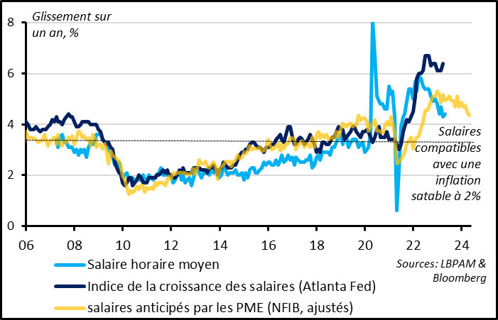Fig. 3 États-Unis : les salaires restent bien trop dynamiques pour espérer un retour rapide et durable de l’inflation vers sa cible